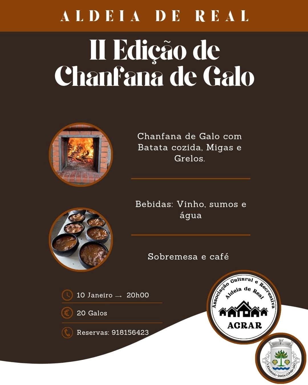 A Junta de Freguesia de São Joaninho divulga e convida toda a população a participar na II Edição da Chanfana de Galo, um evento que valoriza a tradição, a gastronomia e o convívio da nossa terra.