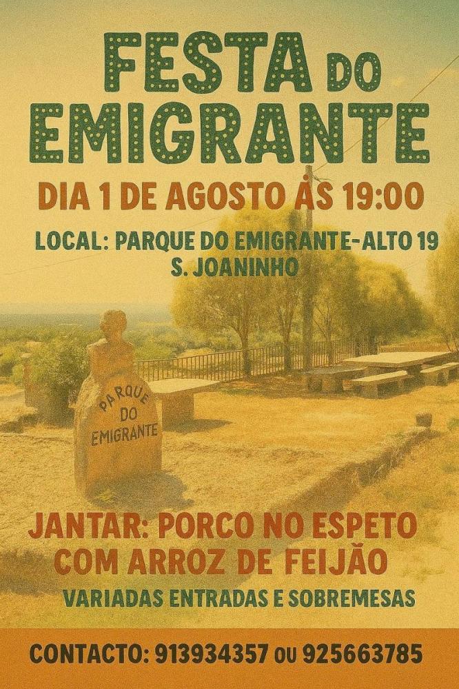 É com enorme satisfação que partilhamos a realização da Festa do Emigrante, uma iniciativa que parte da vontade e dedicação de um grupo de ex-emigrantes da nossa terra, que quiseram reavivar o espírito de convívio e união da nossa comunidade.
