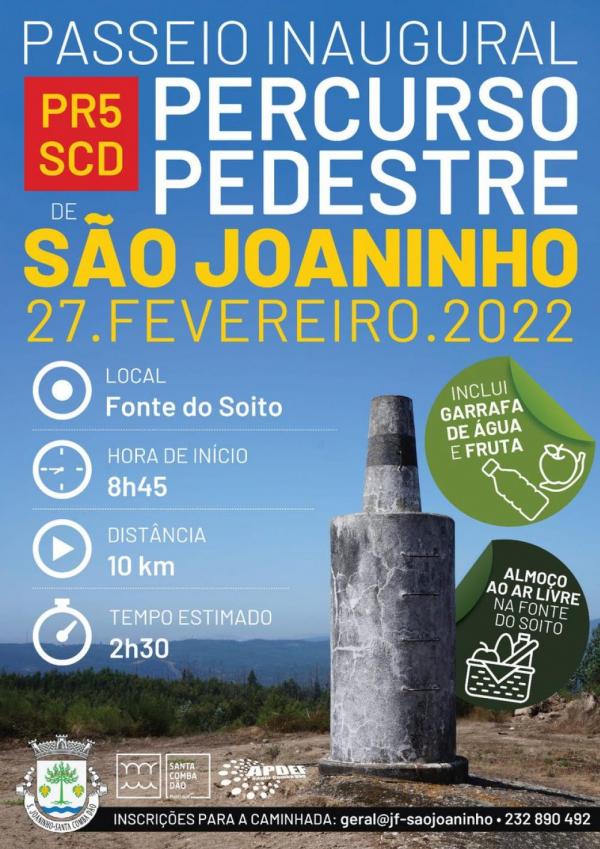 Percurso Pedestre PR5 SCD SÃO JOANINHO Gosta de caminhar, conhecer a história e cultura da Freguesia de São Joaninho, então, o dia 27 de FEVEREIRO é o dia indicado. As inscrições através do email: geral@jf-saojoaninho.pt ou através do telefone: 232 890492 nos dias úteis das 10.00h às 18.00h. Inscreva-se e tenha um dia diferente.